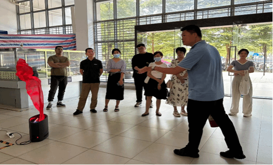 围绕今年全国安全生产月“人人讲安全,个个会应急”主题,为不断提高广大师生的消防安全意识,熟练掌握消防器材的基本使用和灭火方法, 2023年9月6日下午实验室与设备管理处邀请保卫处为全处工作人员在李运强楼C栋一楼大厅进行消防安全教育培训。