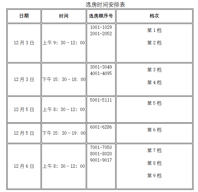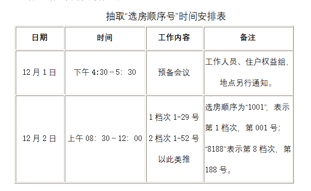 因桥西小区第二批经济适用住房的《选房人员名单》(第一批)信息需进一步核实,更正信息后的《选房人员名单》(第一批)将于12月1日在学校国有资产管理处网页公布。选房工作时间更改如下: